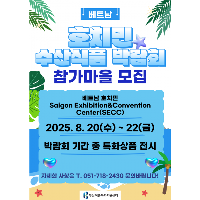 2025년 베트남 호치민 수산식품 박람회가 호치민에서 2025. 8. 20(수) ~ 22(금) 개최됩니다.
