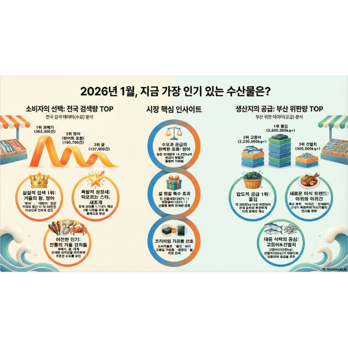 ☞ "2026년 1월 수산물 시장은 방어·굴 같은 겨울 인기 품목의 소비 열기 위에